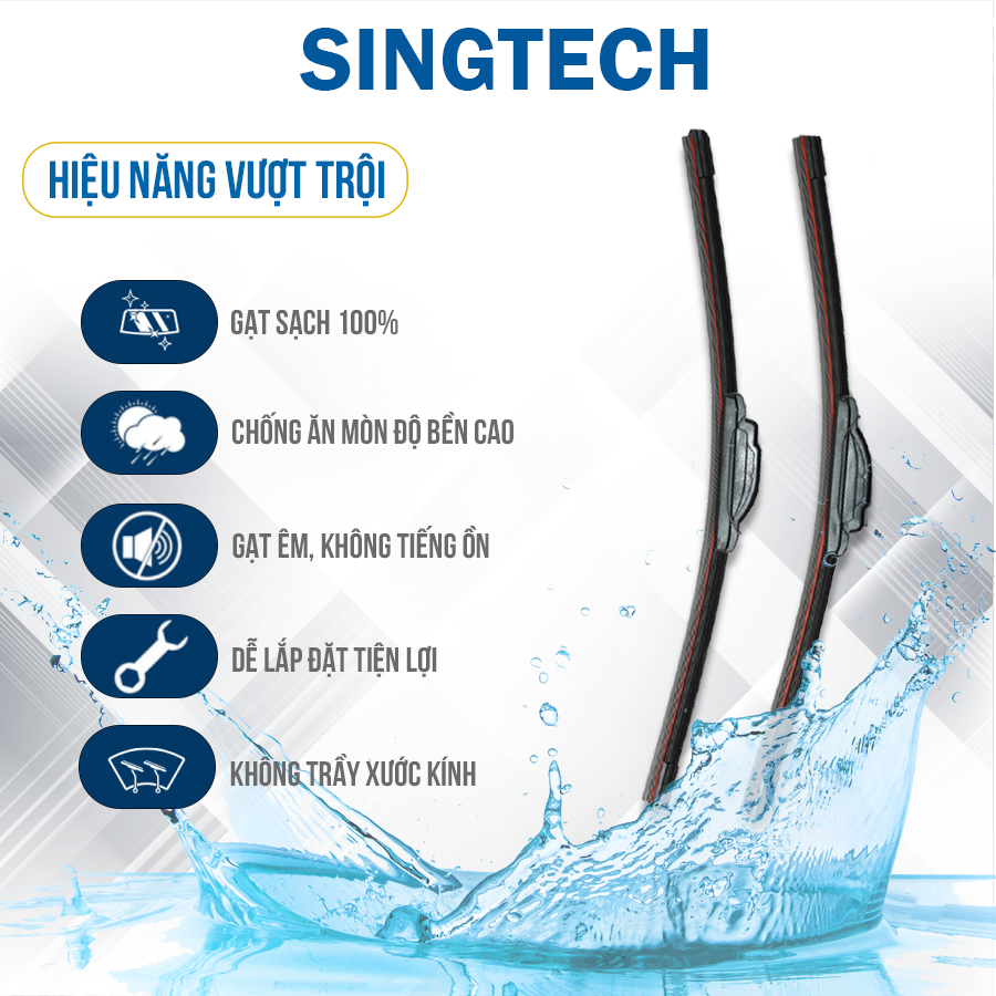 - Thương hiệu: Singtech - Gạt mưa sản xuất theo công nghệ độc quyền Hightech của Singapore